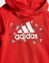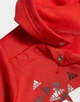 Dein kleiner Schatz erkundet neugierig seine Welt. Da darf ein bequemes Outfit natürlich nicht fehlen. Dieses adidas Set für Babys und Kleinkinder besteht aus einer Jogginghose und einem Hoodie. Das verspielte Logo-Design auf der Brust sorgt außerdem für ordentlich adidas Vibe. Mit deinem Kauf von einem adidas Baumwollprodukt unterstützt du den nachhaltigen Anbau von Baumwolle. Wir von adidas haben Plastikmüll den Kampf angesagt und daher wurde dieses Design mit recycelten Materialien hergestellt.