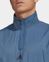 Die 3-Streifen sind einfach unverwechselbar. Dieses adidas Oberteil ist aus leichtem, robustem und einfach gewebtem Polyester. Es kommt mit einem Reißverschluss bis zur Brust und einem Stehkragen zum Schutz vor Kälte. So wird es zum perfekten Begleiter auf und abseits des Platzes. In der Kängurutasche mit Reißverschluss kannst du Handy und Schlüssel verstauen, wenn du unterwegs bist.Das Produkt ist Teil unseres Engagements gegen Plastikmüll und besteht zu 100 % aus recycelten Materialien.