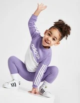 Mit diesem Linear Crew Sweatshirt und Leggings Set von adidas für Kleinkinder und Mädchen hat es Ihr Kleines länger bequem. Dieses Mini-Set in einem Farbblockdesign in Magic Lilac und Weiß hat einen Pullover mit Rundhalsausschnitt und Schulterverschlüssen für einfachen Zugang sowie gerippte Abschlüsse für zusätzlichen Halt. Die passenden Leggings sind aus dehnbarem Baumwollstoff für einen sicheren Sitz. Dieser Anzug ist mit 3-Streifen an den Seiten, einem adidas-Wortmarken-Branding auf der Brust und einem Badge of Sport-Logo an Hüfte und Nacken gekennzeichnet. Waschmaschinenfest. | HY4177