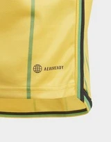 Dieses Heimtrikot verwebt die Erinnerungen stolzer Jamaikaner_innen zu einem einzigartigen Design. Das adidas Jamaika Fußballtrikot für Kinder und Teens stammt aus der Zusammenarbeit mit der Fashion Brand Wales Bonner und versprüht mit seinem gestreiften Look und kontrastierenden Details lässige 80s-Vibes. Die Fan-Version sorgt mit atmungsaktiven Mesh-Einsätzen und feuchtigkeitsabsorbierender AEROREADY Technologie für ein bequemes Tragegefühl. Das gewebte Verbandslogo auf der Brust und der Wales Bonner Schriftzug im Nackenbereich machen das Eyecatcher-Design komplett.Das Produkt ist Teil unseres Engagements gegen Plastikmüll und besteht zu 100 % aus recycelten Materialien.