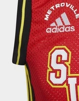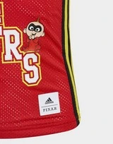 Jetzt ist Spielen angesagt. Dieses adidas Basketballtrikot für Kinder feiert die Metroville Superheroes aus Disney Pixars „Die Unglaublichen – The Incredibles“. Jack-Jack sitzt auf einem Buchstabe und verleiht deinem kleinen Schatz Superhelden-Power. Außerdem sorgt die AEROREADY Technologie für ein angenehm trockenes Tragegefühl an warmen Tagen.Das Produkt ist Teil unseres Engagements gegen Plastikmüll und besteht zu 100 % aus recycelten Materialien.