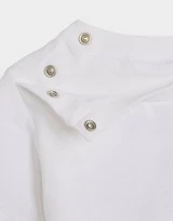• Gerippter Rundhalsausschnitt mit Druckknöpfen an der Schulter
