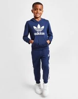Cop ‚em eine klassische Kombination mit diesem Trefoil Overhead Trainingsanzug für Kinder von adidas Originals. Dieser Anzug mit normaler Passform in der Farbe Night Indigo ist aus leichtem, flauschigem Stoff geschnitten, der teilweise recyceltes Polyester enthält. Es verfügt über eine Pulloverkapuze für Schutz und einen elastischen Bund für eine entspannte Passform. Es hat gerippte Abschlüsse, um die Passform zu sichern, mit Seitentaschen und einer Kängurutasche für Ihre wichtigsten Dinge. Abgerundet mit Trefoil-Branding auf Brust und Bein. Waschmaschinenfest.