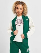 Mit dieser College-Bomberjacke für Damen von adidas Originals kannst du dich in einem adretten Stil anziehen. Diese JD-exklusive Jacke ist in grüner Farbe erhältlich und besteht aus einer weichen Mischung aus Baumwolle und recyceltem Polyfleece für dauerhaften Komfort. Es verfügt über einen durchgehenden Reißverschluss und kontrastierende weiße Ärmel mit dehnbaren Rippbündchen, um die Form zu sichern. Es hat einen klassischen Bomberkragen, während Fronttaschen eine einfache Aufbewahrung bieten. Abgerundet mit einem auffälligen College-Logo von adidas Originals auf der Rückseite und einem verkleinerten Trefoil-Branding auf der Brust. Waschmaschinenfest. | Unser Model ist 5’7″ groß und trägt eine Größe S. | IA1528