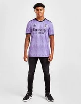 Performance meets Style. Inspiriert vom Streifen des Vereinslogos präsentiert sich dieses adidas Real Madrid Auswärtstrikot nicht nur in einem neuen Farbton, sondern auch mit einem coolen geometrischen Muster. Es sorgt dank feuchtigkeitsabsorbierender AEROREADY Technologie und Mesh-Einsätzen für ein besonders angenehmes Tragegefühl. Mit dem gewebten, Ton in Ton gehaltenen Vereinslogo zeigst du außerdem deine Fanliebe.Das Produkt ist Teil unseres Engagements gegen Plastikmüll und besteht zu 100 % aus recycelten Materialien.