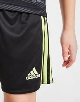 Diese Fußballausrüstung ist vom futuristischen Heimstadion von Real Madrid inspiriert und den Fans gewidmet, die dort auch in den nächsten Jahrzehnten ihren Verein anfeuern. Mit dieser adidas Ausweichausrüstung für Kinder kann dein kleiner Supporter schon jetzt seine Fanliebe zeigen. Ein Paar wadenlange Socken, Shorts und das alles entscheidende Trikot sind im Set enthalten. Außerdem sorgen das weiche Material und die feuchtigkeitsabsorbierende AEROREADY Technologie für ein angenehmes Tragegefühl.Das Produkt ist Teil unseres Engagements gegen Plastikmüll und hat einen Recycling-Anteil von mindestens 60 %.