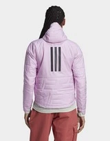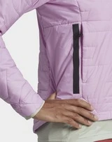 Funktional und stylish – diese warme TERREX MYSHELTER PrimaLoft Hooded Padded Jacke darf bei deiner nächsten Winterwanderung nicht fehlen. Durch das leichte, superweiche Material trägt sie nicht auf und bietet bei Wind und Wetter mit der Kapuze ein Plus an Schutz und Komfort. Das ausgefallene Steppmuster ist nicht nur ein optisches Highlight, sondern auch mit recyceltem Polyester gefüllt – für ein Plus an Wärme und gleichzeitig leichten Komfort. Das PFC-freie, wasserabweisende Finish hält außerdem Nässe ab. Verschiedene Taschen mit Platz für wichtige Kleinigkeiten runden das Design ab. Zudem lässt sich die Jacke mit den stylishen TERREX Allover-Logos und den 3-Streifen perfekt zu allem kombinieren.