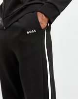 Trendgetrieben mit Athleisure-Styling verleiht BOSS der ständig wachsenden BOSS Athleisure, einer Diffusionslinie von BOSS, die sich auf jugendliche und innovative Designs für den Alltagsmenschen spezialisiert hat, einen sportlichen Touch. Sie beliefern uns mit luxuriöser Freizeitkleidung in Form von charakteristischen Stücken und präsentieren uns diese Hadiko Tape Jogginghose, die in einer schwarzen Farbgebung und mit kontrastierenden Banddetails an den Seiten erhältlich sind. Details: Schwarze Farbe, Kordelzug in der Taille, Eingrifftaschen, gerippte Knöchelbündchen, reguläre Passform und BOSS-Branding am Oberschenkel runden das Design ab. Unser Model trägt Größe M. Passendes Sweatshirt findest du unter 512759.