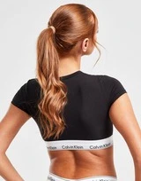 Lehnen Sie sich zurück in einem Premium-Look mit diesem Lounge Crop T-Shirt für Damen von Calvin Klein. Dieses schmal geschnittene T-Shirt in Schwarz und Weiß ist aus weichem, dehnbarem Stoff für entspannten Komfort geschnitten. Es hat kurze Ärmel mit Rundhalsausschnitt und einen verkürzten Saum für eine entspannte Atmosphäre. Abgezeichnet mit dem charakteristischen Calvin Klein-Branding. Maschinenwaschbar | Unser Model ist 5’6″ groß und trägt eine Größe S.
