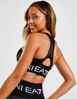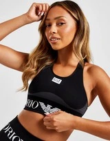 Mit diesem nahtlosen Damen-Sport-BH von Emporio Armani EA7 werden Sie beim Training erstklassig. Dieser eng anliegende Sport-BH in schwarzer Farbe besteht aus einer glatten, strapazierfähigen Polyknit-Mischung mit zusätzlichem Stretch. Es verfügt über einen Rundhalsausschnitt und dicke Träger sowie ein sportliches Racerback-Design für ein sicheres Tragegefühl. Es hat einen atmungsaktiven Schlüssellochausschnitt auf der Rückseite und ein stützendes elastisches Unterband. Abgerundet mit einem sich wiederholenden EA7-Branding am Saum und einem charakteristischen Logo auf der Brust. Maschinenwaschbar. | Unser Model ist 5’8″ groß und trägt eine Größe S.