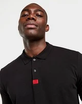 Erhöhen Sie Ihre wochenendtaugliche Passform mit diesem Deresolo Langarm-Poloshirt für Herren von HUGO. Dieses Premium-Poloshirt in Schwarz ist aus strapazierfähigem Baumwollstoff für superweichen Tragekomfort gefertigt. Es hat eine Knopfleiste mit zwei Knöpfen und einen weiten Kragen sowie lange Ärmel mit gerippten Bündchen. Abgerundet wird dieses Shirt mit einem kontrastierenden roten HUGO-Abzeichen, das unter der Knopfleiste gestickt ist. Waschmaschinenfest. | Unser Model ist 6 Fuß 1 Zoll groß, hat einen Brustumfang von 38 Zoll und trägt Größe M.