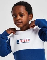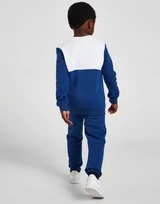 Mit diesem Color Block Repeat Crew Trainingsanzug für Kinder von Jordan verleihst du deinem Kleinen einen vom Court inspirierten Look. In einem blau-weißen Farbblockdesign ist dieser JD-exklusive Anzug aus einer kuscheligen Baumwollmischung für ganztägigen Komfort gefertigt. Der Pullover hat einen Rundhalsausschnitt und gerippte Abschlüsse, während die Maching-Hose einen elastischen Bund und Manschetten an den Knöcheln für eine individuelle Passform hat. Mit einem roten Jordan-Box-Branding auf der Brust wird dieses Set mit Jumpman-Logos abgerundet, die sich auf dem linken Bein wiederholen. Waschmaschinenfest.