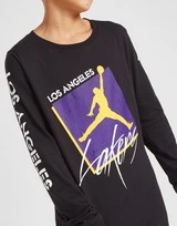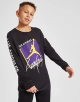 Mit diesem NBA LA Lakers Max90 Langarm-T-Shirt für Junioren von Jordan bleiben Sie auf den Plätzen klassisch. Dieses entspannte T-Shirt in der Farbe Schwarz hat einen gerippten Rundhalsausschnitt und lange Ärmel für die nötige Abdeckung. Es besteht aus weicher, bequemer Baumwolle und ist mit einer von den Lakers inspirierten Jumpman-Grafik auf der Brust und dem Vereinswappen am Ärmel versehen. Waschmaschinenfest.