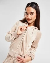 Erneuern Sie Ihre Freizeitkleidung mit diesem Diamante Velour Full Zip Hoodie für Damen von Juicy Couture. Dieser normal geschnittene Hoodie in einer JD-exklusiven Taupe-Farbe ist aus superweichem, luxuriösem Veloursstoff für höchsten Komfort gefertigt. Es verfügt über einen durchgehenden Reißverschluss mit verstellbarer Kapuze für kuscheligen Schutz und dehnbare Rippbündchen, um die Form zu sichern. Es hat eine geteilte Kängurutasche auf der Vorderseite zur einfachen Aufbewahrung und ist mit dem ikonischen Wortmarken-Logo von Juicy Couture in Strass auf der Brust versehen. Waschmaschinenfest. | Unser Model ist 5’8″ groß und trägt eine Größe S.
