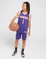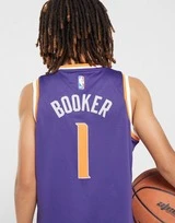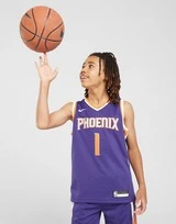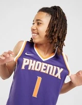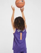 Treten Sie auf den Platz und zeigen Sie Ihre Unterstützung in diesem NBA Phoenix Suns Booker #1 Jersey für Junioren von Nike. Dieses Standard-Fit-Shirt in lila Farbgebung besteht aus leichtem Polyestergewebe, das Sie kühl hält, wenn es im Spiel heiß hergeht. Es hat kontrastierende Verzierungen und einen V-Ausschnitt sowie den Namen und die Nummer von Booker auf der Rückseite. Vollendet mit Teamdetails von Phoenix Suns und dem legendären Swoosh-Logo auf der Brust. Waschmaschinenfest.