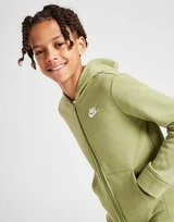 Vom Sofa auf die Straße – mit diesem Sportswear-Fleece-Trainingsanzug für Junioren von Nike kannst du dich perfekt kombinieren lassen. In einer Alligator-Farbe ist dieser Anzug mit Standardpassform aus weichem Baumwoll-Fleece-Stoff für ganztägigen Komfort. Der Hoodie hat einen durchgehenden Reißverschluss vorne, eine feste Kapuze und gerippte Abschlüsse, während die Jogger über einen per Kordelzug verstellbaren Bund und Manschetten an den Knöcheln verfügen, um Ihre Turnschuhe zur Geltung zu bringen. Mit Seitentaschen für deine Essentials wird dieses Set durch das Nike Futura-Branding auf Brust und Oberschenkel abgerundet. Waschmaschinenfest.