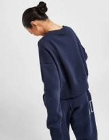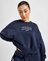 Lagen Sie sich in diesem Varsity Crop Crew Sweatshirt für Damen von Nike. Dieses locker sitzende Sweatshirt in der Farbe Obsidian ist aus einem weichen Baumwoll-Fleece-Stoff für dauerhaften Komfort gefertigt. Es verfügt über einen gerippten Rundhalsausschnitt und lange, überschnittene Ärmel mit dehnbaren, gerippten Abschlüssen, um die Passform zu sichern. Abgerundet mit einem College-inspirierten Nike-Logo auf der Brust. Waschmaschinenfest. | Unser Model ist 5’8″ groß und trägt eine Größe S.
