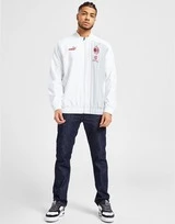 Repräsentiere deine Mannschaft in dieser AC Mailand Pre-Match-Trainingsjacke für Herren von PUMA. Dieses Trainingsoberteil aus leichtem Polygewebe in weißer Farbe verleiht dir den gleichen Look wie die Profis. Sie hat kontrastierende graue Grafiken und verfügt über einen durchgehenden Reißverschluss, lange Ärmel und elastische Abschlüsse für eine individuelle Passform. Mit dem charakteristischen PUMA-Branding in Rot wird diese Jacke mit dem Wappen des AC Mailand auf der Brust abgerundet. Waschmaschinenfest. Unser Model hat einen Brustumfang von 38″ und trägt Größe M.