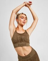 Mit diesem nahtlosen FormKnit-Sport-BH für Damen von PUMA bleibst du vom Fitnessstudio bis zur Laufbahn schlank. Dieser schmal geschnittene BH in olivgrüner Farbe mit Schlangenhaut-Print ist aus elastischem FormKnit Seamless-Stoff für perfekte Passform und herausragenden Komfort gefertigt. Es wurde für schonendes Training entwickelt und verfügt über herausnehmbare Pads, einen langen Schnitt und ein elastisches Unterbrustband. Mit schweißableitender dryCELL-Technologie für ein kühles und trockenes Tragegefühl ist dieser BH mit einem farblich abgestimmten PUMA-Branding auf der Vorderseite abgerundet. Waschmaschinenfest. | Unser Model ist 5 Fuß 6,5 Zoll groß und trägt eine Größe S.