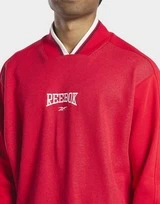 In jeder Hinsicht klassisch. Dieses Reebok Sweatshirt mit geripptem V-Ausschnitt erinnert an Jacken im College-Style, die man bei Pep-Rallyes und Sportveranstaltungen trägt. Es ist aus weichem French-Terry-Mischmaterial und hat ein Reebok Retro-Logo, das deine Liebe für echte Classics zeigt.