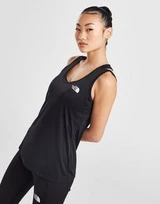 Halten Sie es einfach, wenn Sie in diesem Flex-Tanktop für Frauen von The North Face trainieren. Diese locker sitzende Weste in schwarzer Farbe besteht aus glattem, leichtem Poly-Strick-Material mit schweißableitender FlashDry-Technologie für kühlen und trockenen Tragekomfort. Es hat einen U-Ausschnitt und Ausschnitte auf der Rückseite für ein uneingeschränktes und dennoch stützendes Tragegefühl. Ergänzt mit Simple Dome-Logos auf Brust und Rücken. Waschmaschinenfest. | Unser Model ist 5 Fuß 5,5 Zoll groß und trägt eine Größe S.