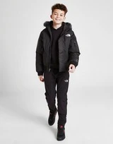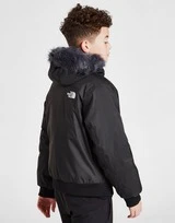 Schlagen Sie die Kälte mit dem Reißverschluss in dieser Gotham-Jacke für Kinder von The North Face. Dieser Premium-Wintermantel in schwarzer Farbgebung besteht aus recyceltem Nylongewebe mit einer PFC-freien, dauerhaft wasserabweisenden Imprägnierung. Ausgestattet mit 600-cuin-Gänsedaunenisolierung für hervorragende Wärme, verwendet es DryVent, um Sie vor Überhitzung zu schützen. Der durchgehende Reißverschluss kann mit einer Knopfleiste verdeckt werden, während der Kapuzenbesatz aus Kunstpelz einen arktisch inspirierten Rand hinzufügt. Mit gerippten Abschlüssen für ein weiches Tragegefühl ist diese Jacke mit sicheren Pattentaschen und dem charakteristischen TNF-Branding versehen. Waschmaschinenfest.