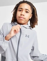 Schützen Sie sich vor den Elementen mit dieser Full Zip Tech Woven Hooded Jacket von Under Armour für Kinder. Diese Jacke mit normaler Passform in einer stahlgrauen Farbe ist aus leichtem, strapazierfähigem Polyester geschnitten und sorgt für glatten, wasserabweisenden Komfort. Es verfügt über eine Kapuze mit durchgehendem Reißverschluss für individuellen Schutz und elastische Abschlüsse für einen sicheren Sitz. Es hat Seitentaschen für Ihre Essentials und wird durch das Under Armour-Wappen auf der Brust abgerundet. Waschmaschinenfest.